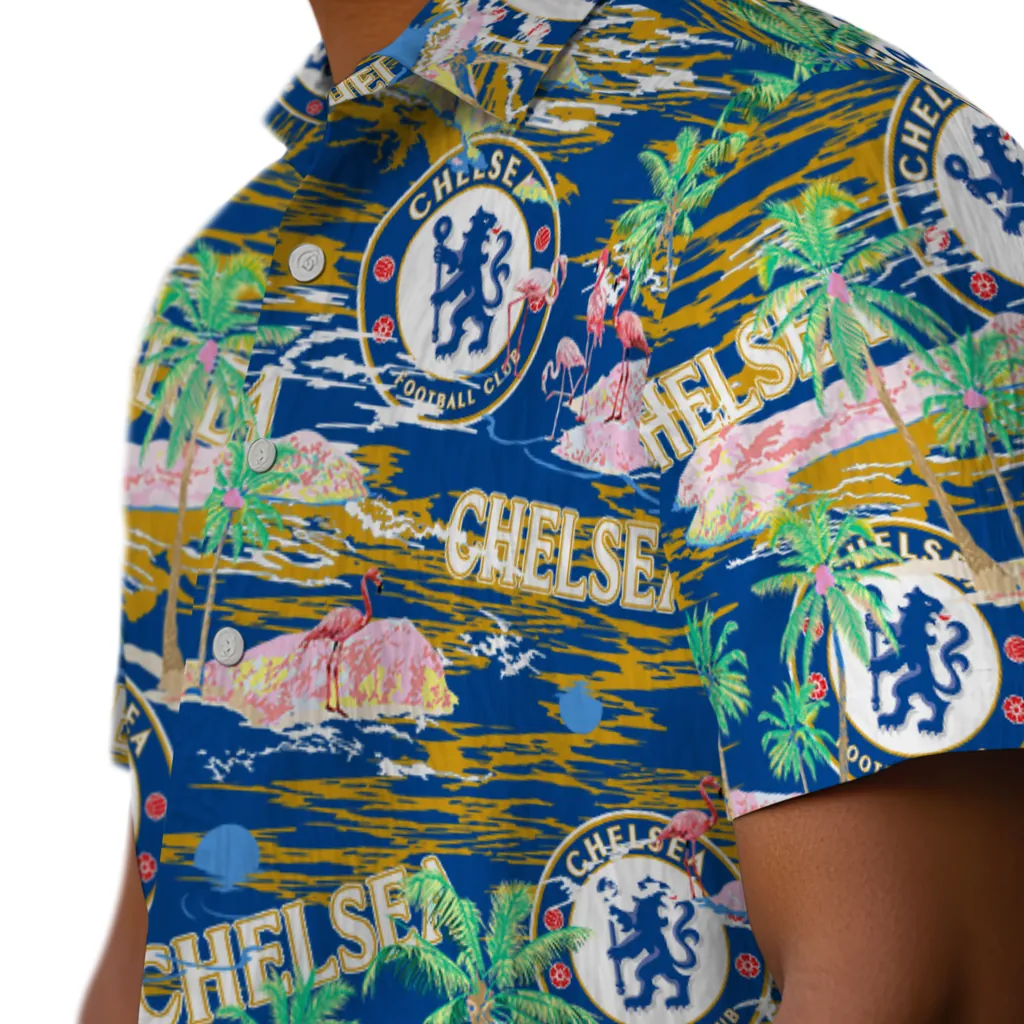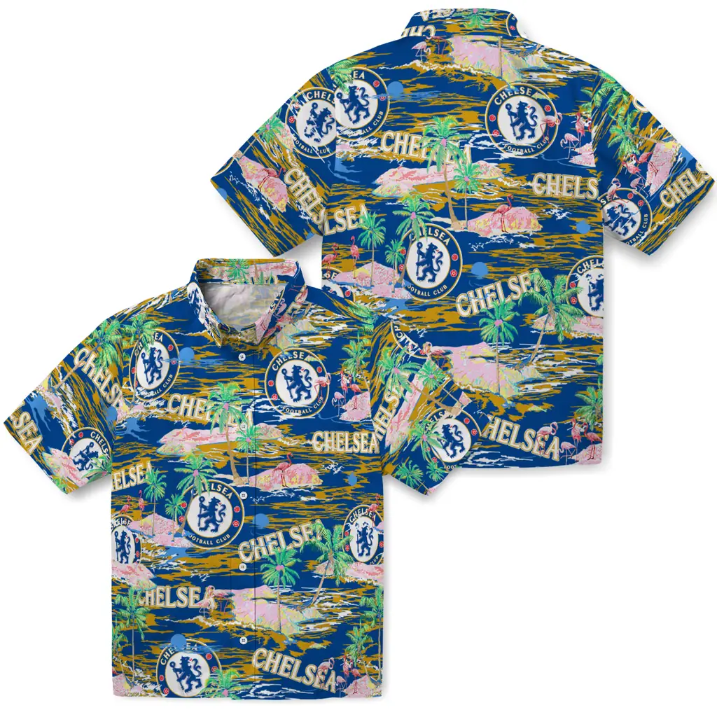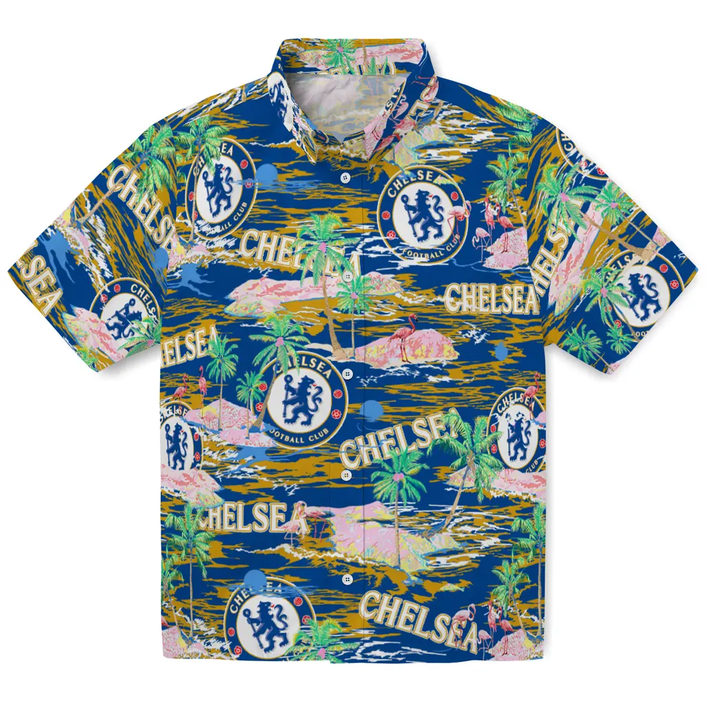 The Chelsea Hawaiian Shirt – Flamingo Retreat blends authentic team pride with a classic tropical aesthetic. Designed for a relaxed fit, it features high-quality fabric and exclusive prints that capture the Aloha spirit, making it a versatile choice for sports fans and summer outings alike.