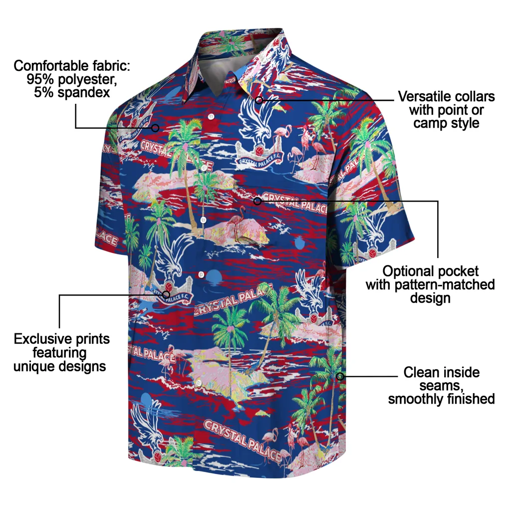 The Crystal Palace Hawaiian Shirt – Flamingo Retreat blends authentic team pride with a classic tropical aesthetic. Designed for a relaxed fit, it features high-quality fabric and exclusive prints that capture the Aloha spirit, making it a versatile choice for sports fans and summer outings alike.