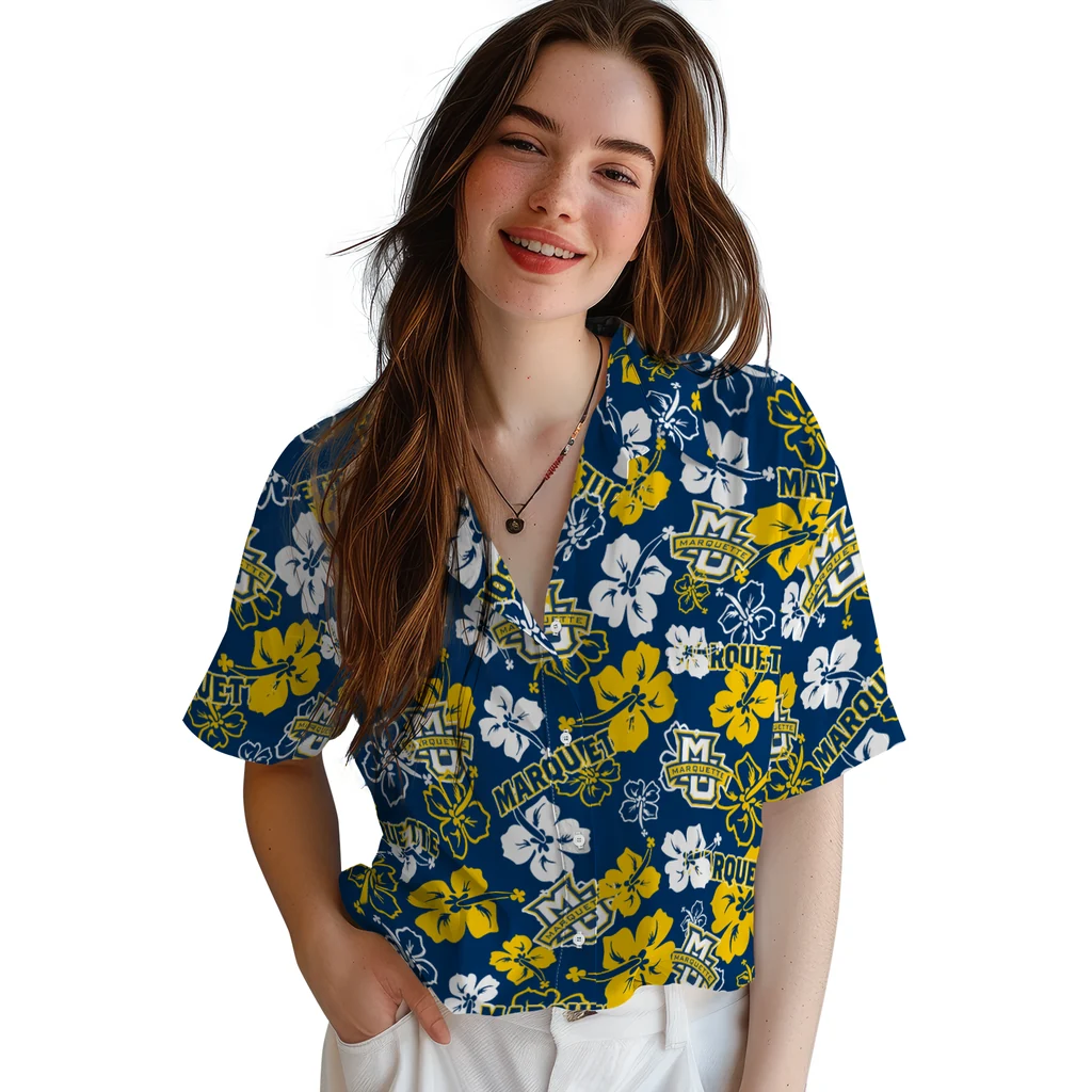 Marquette Golden Eagles Hawaiian Shirt – Hibiscus Bloom