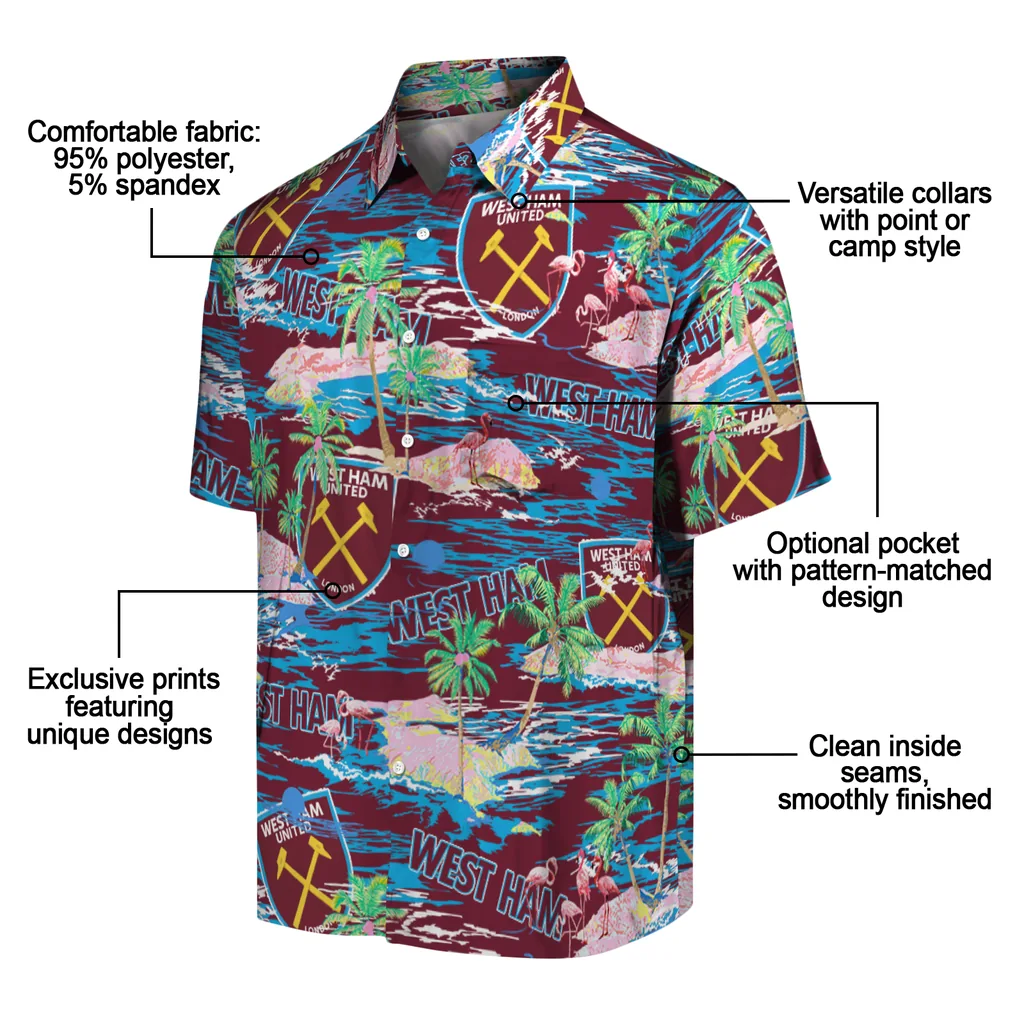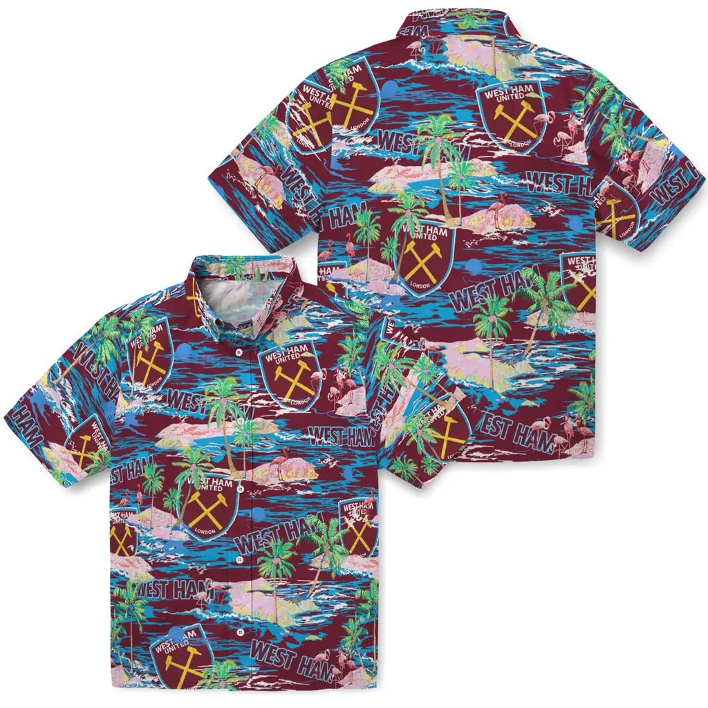 The West Ham United Hawaiian Shirt – Flamingo Retreat blends authentic team pride with a classic tropical aesthetic. Designed for a relaxed fit, it features high-quality fabric and exclusive prints that capture the Aloha spirit, making it a versatile choice for sports fans and summer outings alike.