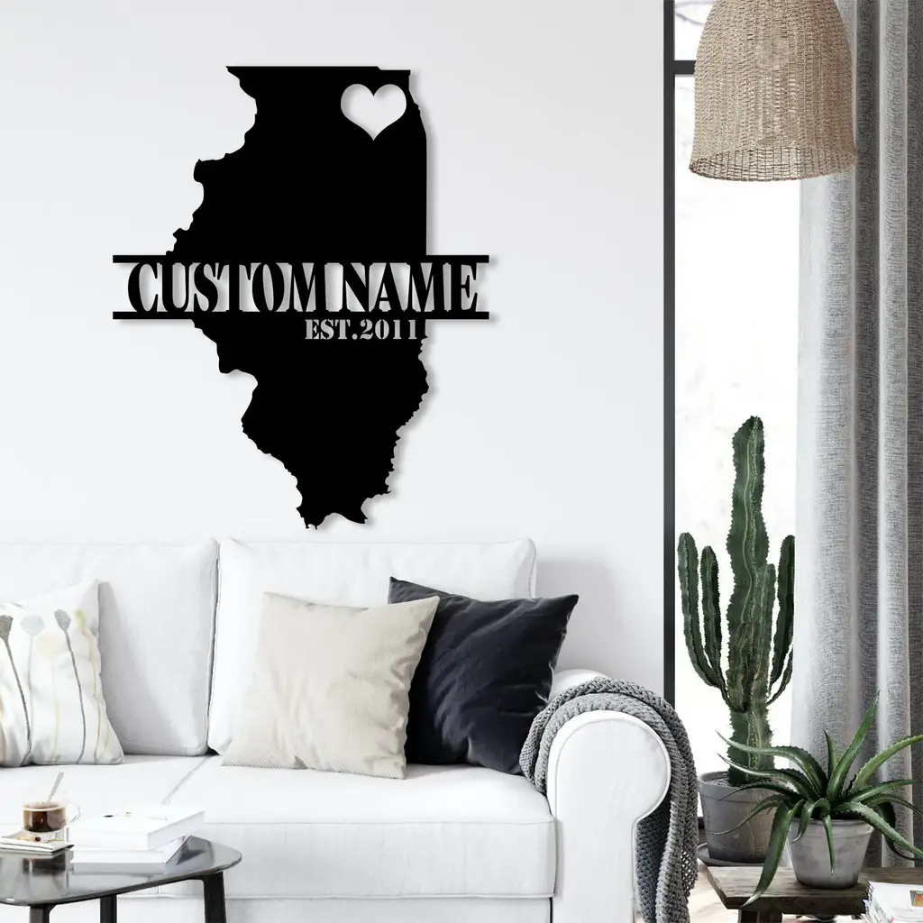 Family & Love Metal Sign – Personalized Illinois Map