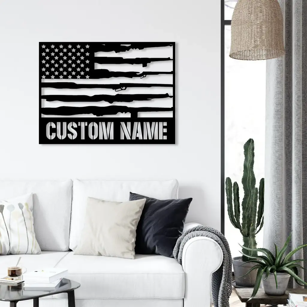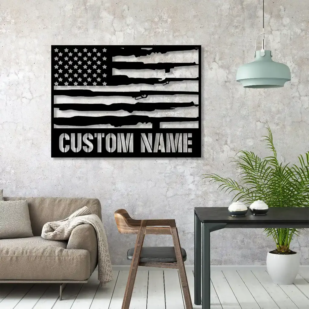 Military & Patriotic Metal Sign – Custom US Gun