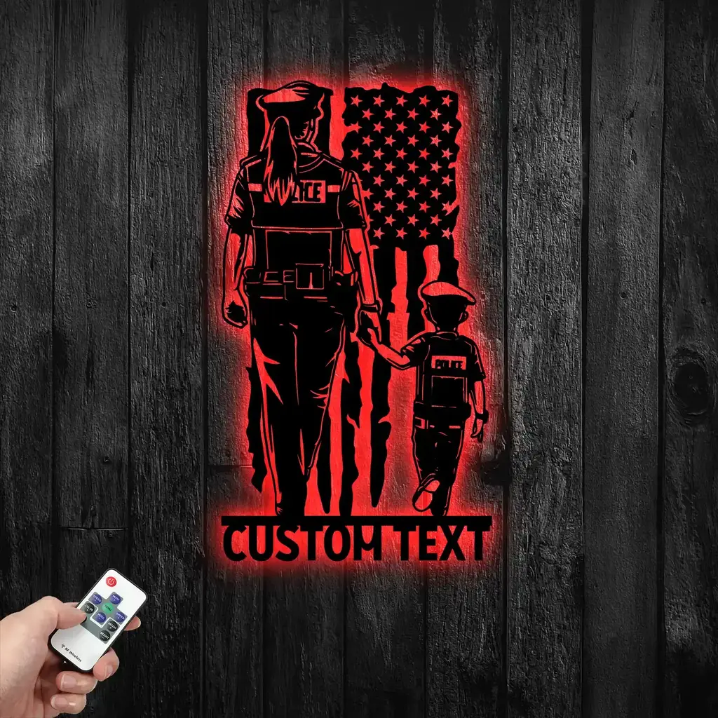 Elevate your space with a touch of personal flair and industrial strength. The Military & Patriotic Metal Sign – Personalized US Police Mom and Son Name is a premium metal sign crafted to suit any environment—from dedicated fan caves and home offices to professional storefronts. Built with new technology, it offers a sleek, modern aesthetic that prioritizes durability and an elegant finish.