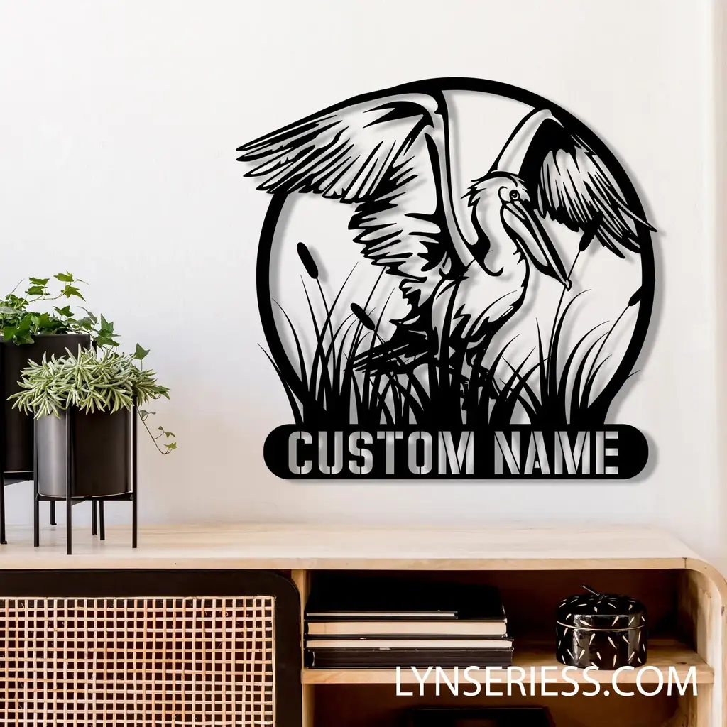 Nature & Outdoors Metal Sign – Tailored Pelican Bird Monogram
