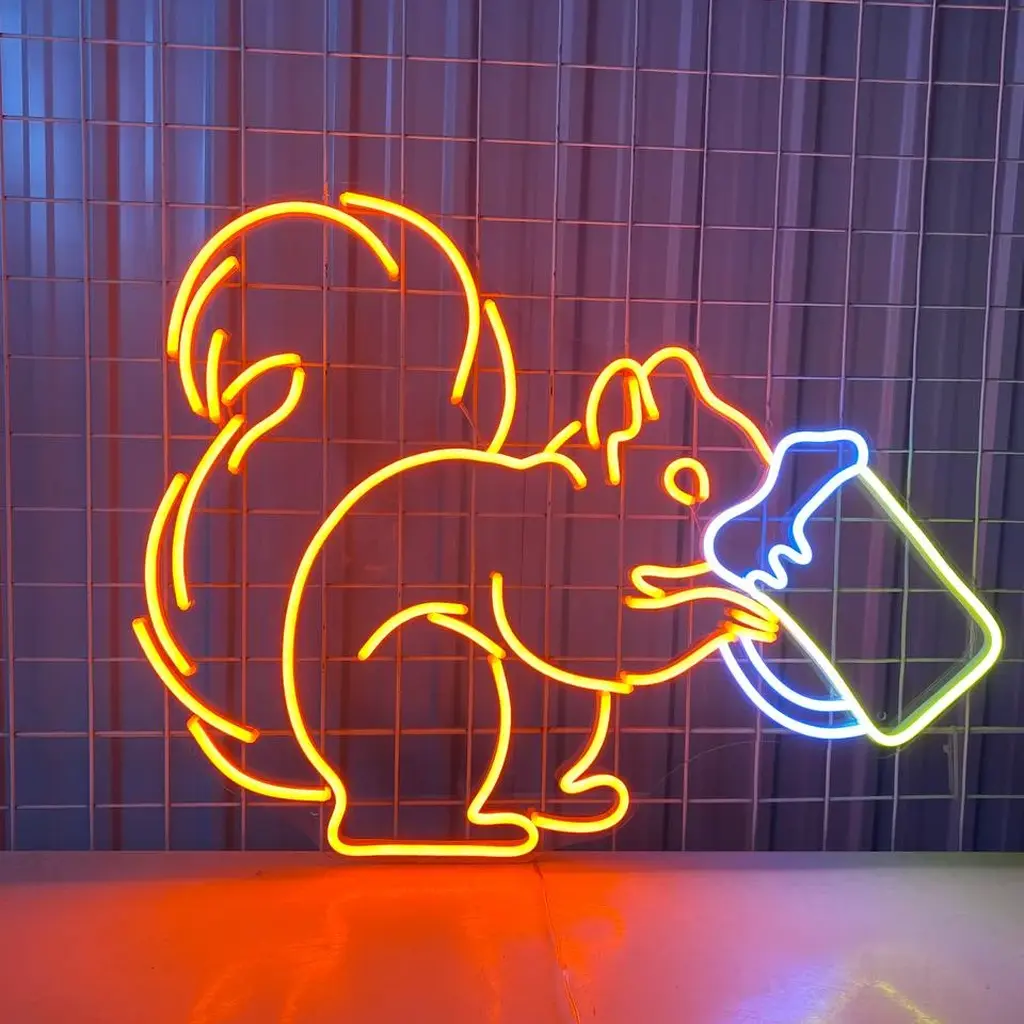 Animals & Pets Neon Sign – Squirrel Drinking Beer