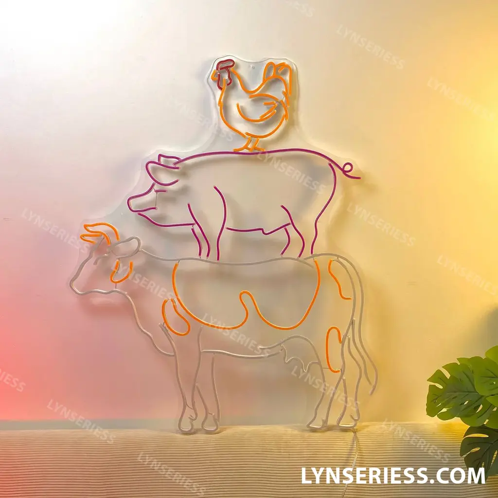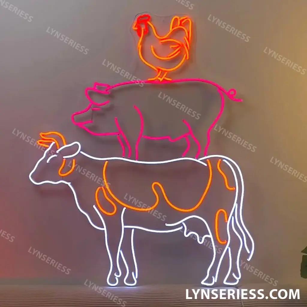 Animals & Pets Neon Sign – Cow Pig Chicken Farm & BBQ