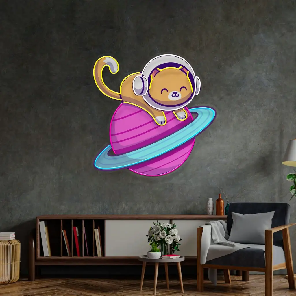 Animals & Pets Neon Sign – Feeline Astronaut Chilling Tabby