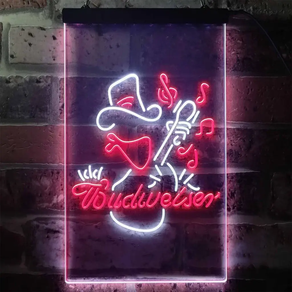 Budweiser Neon Sign – Rancher Play Guitar Home Bar