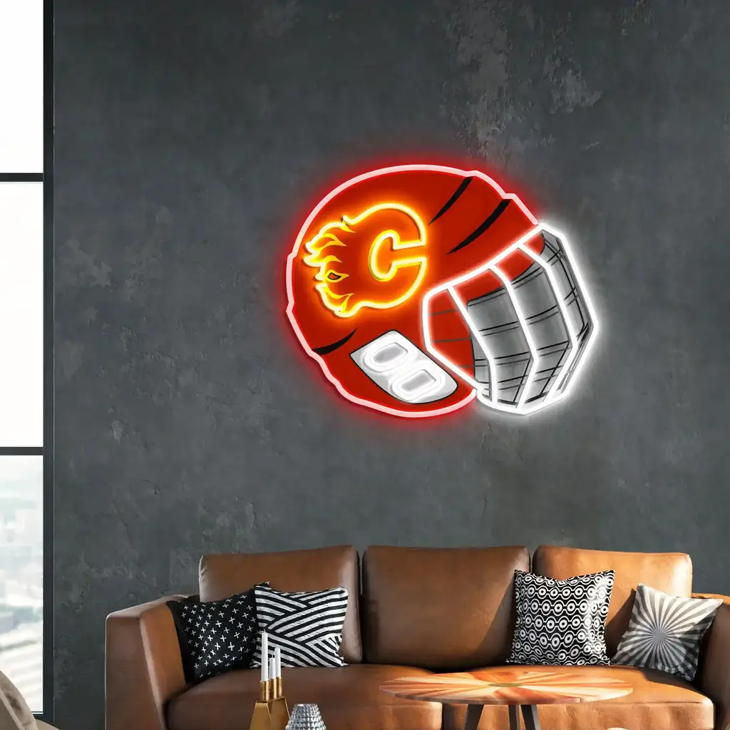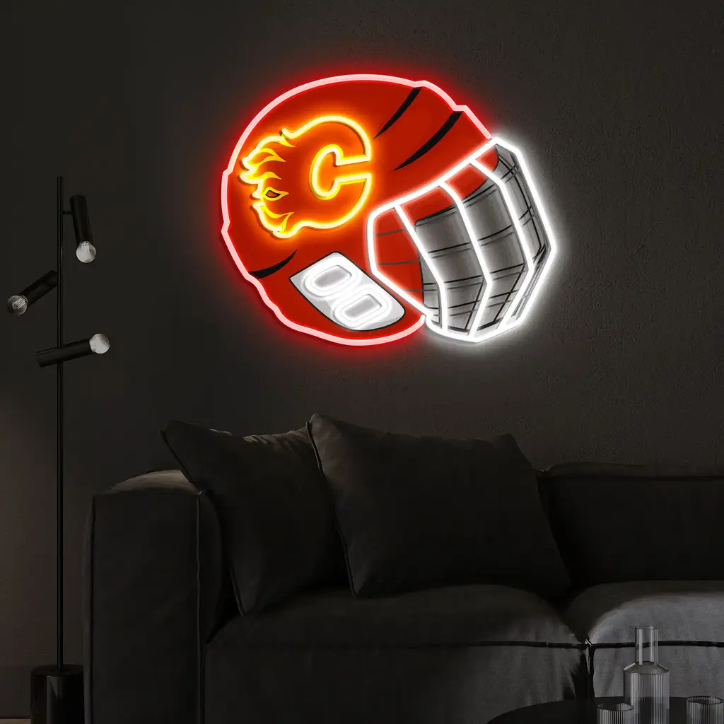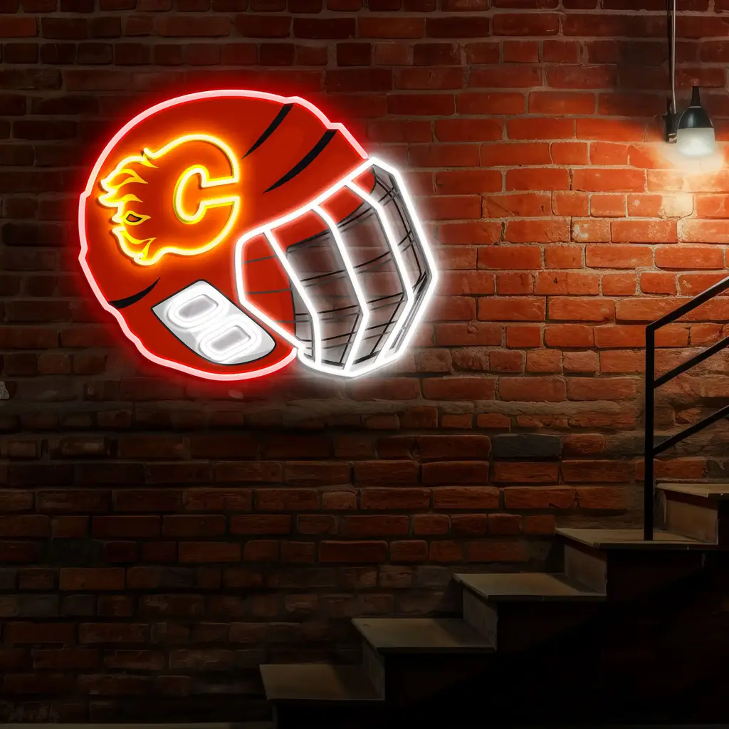 Calgary Flames Neon Sign – NHL Hockey Helmet Acrylic LED