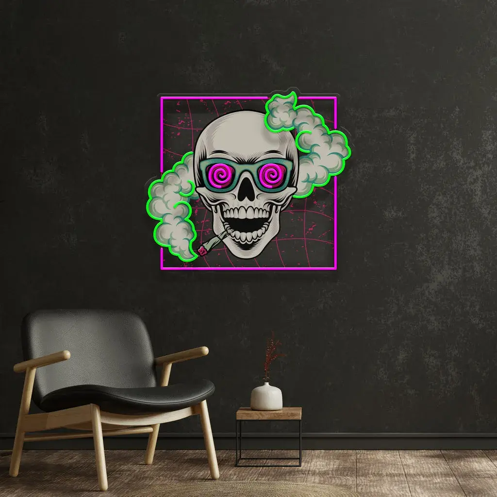 Cannabis & Lifestyle Neon Sign – Smoking High Skull