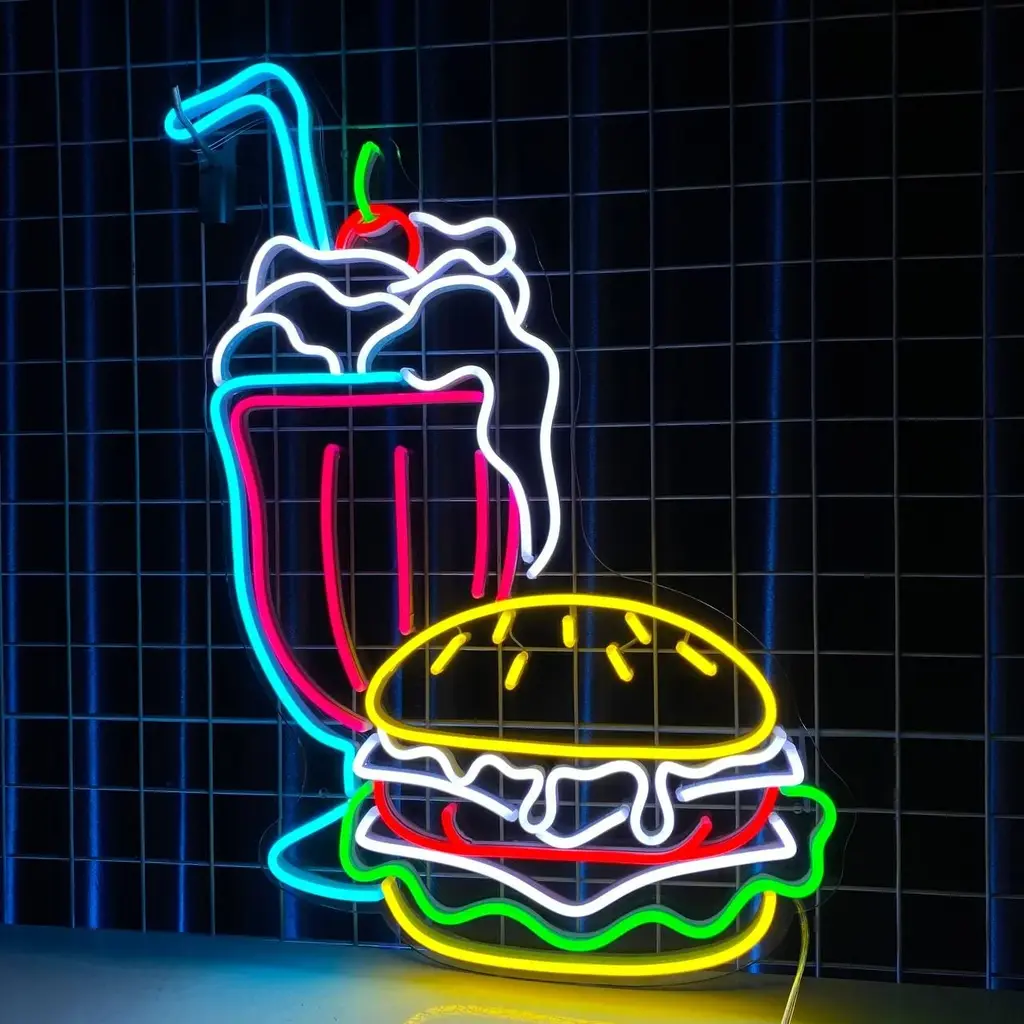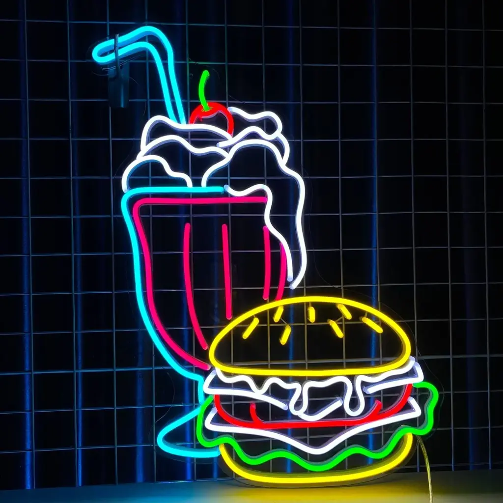 Food & Coffee Neon Sign – Burger Milkshake LED