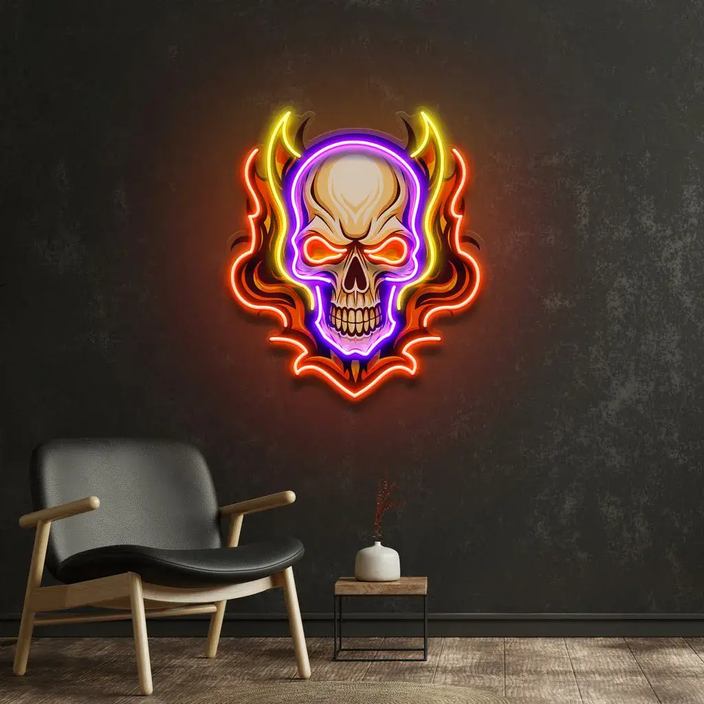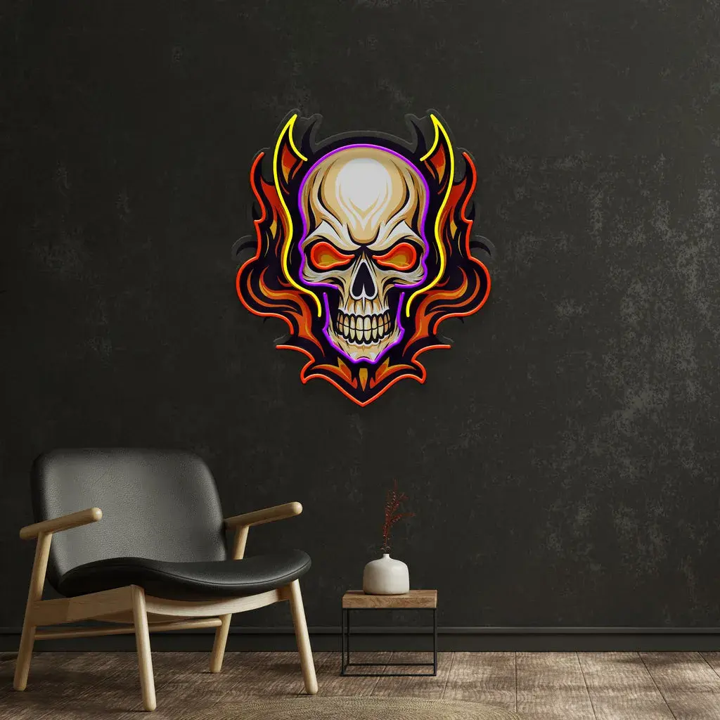 Home Decor Neon Sign – Angry Fire Skull