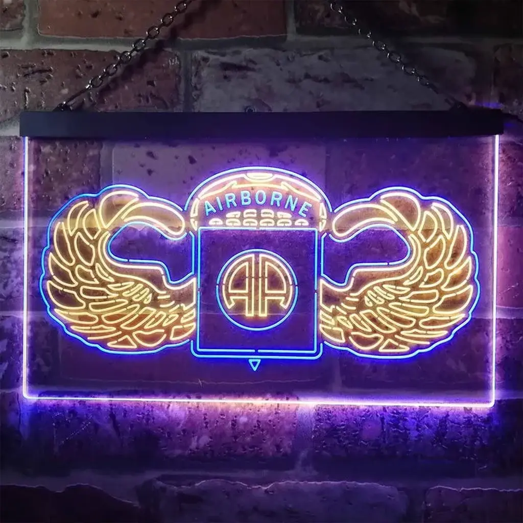 Military & Patriotic Neon Sign – US Army 82nd Airborne Division Wings