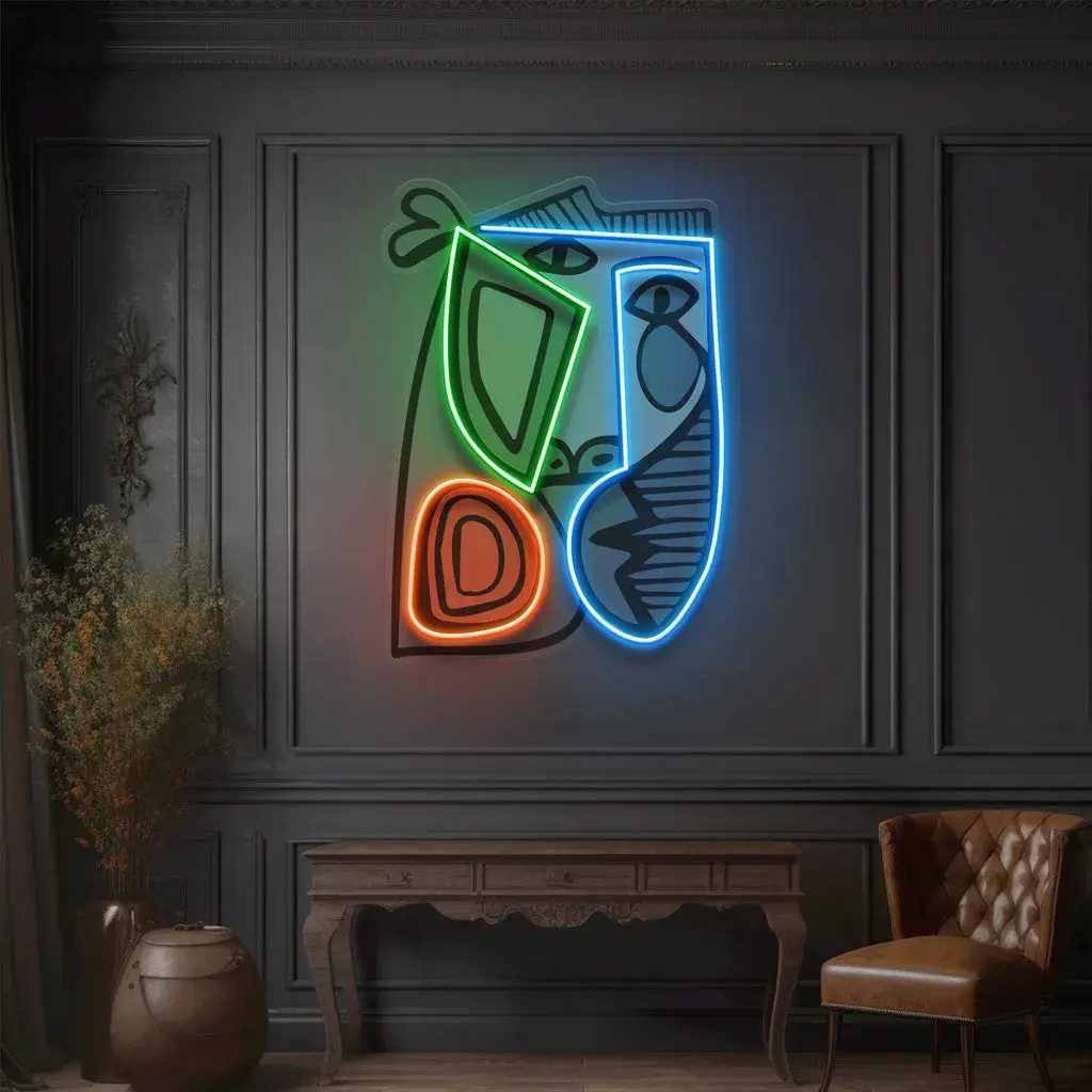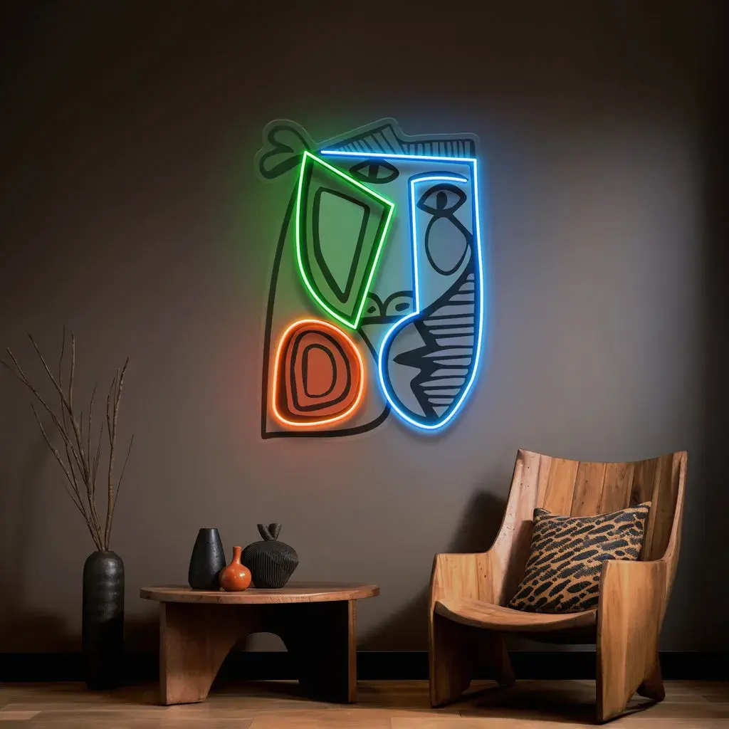 Nature & Outdoors Neon Sign – Face With Colorful Shape Abstract Art Picasso