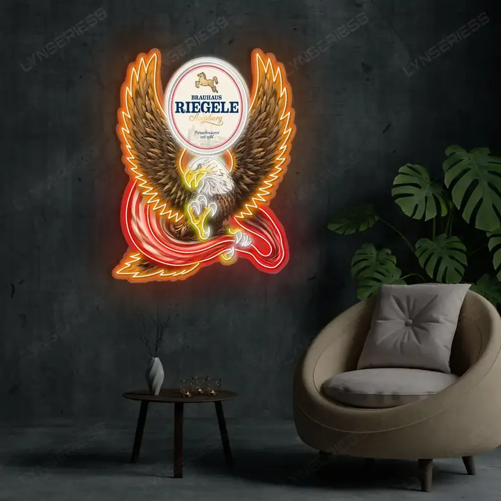 Bring a new energy to your space with a glow that fits your style. The Riegele Neon Sign – Bespoke Logo Custom American Eagle is designed to work in any setting—from quiet home corners and fan caves to busy commercial storefronts—offering a reliable light source that prioritizes safety and long-term use.