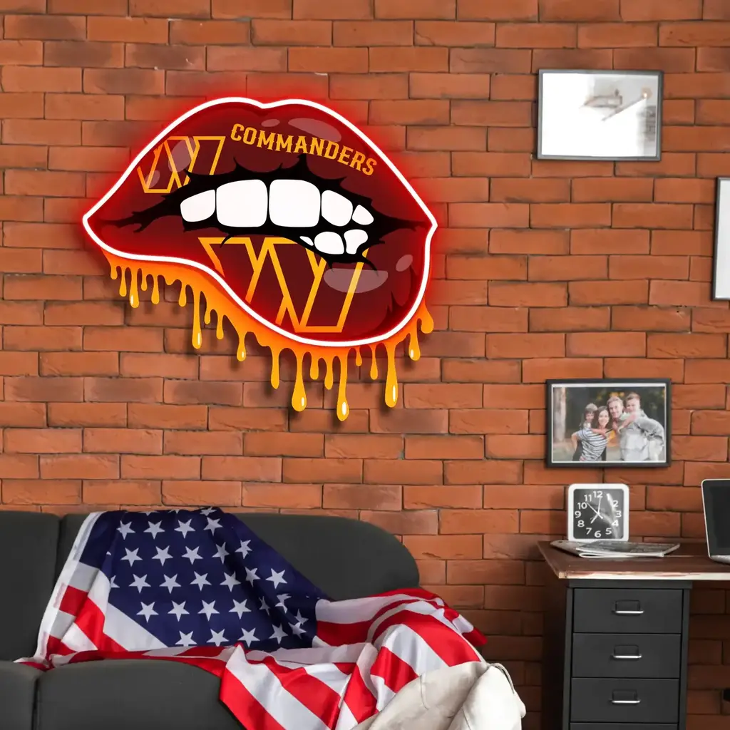 Washington Commanders Neon Sign – Dripping Lips